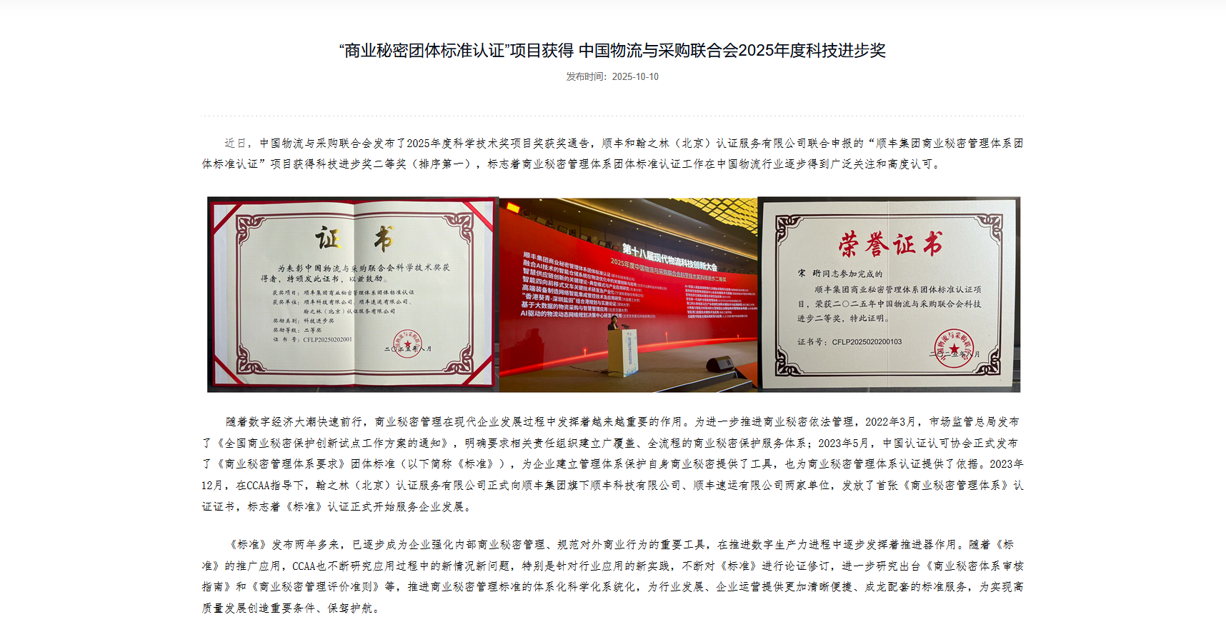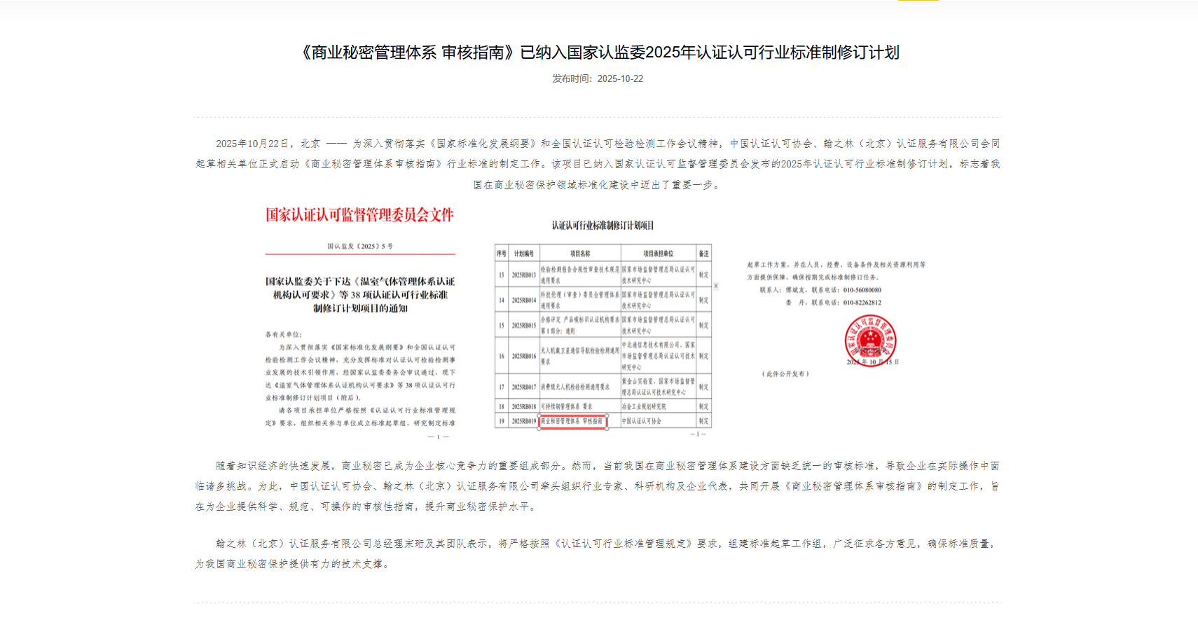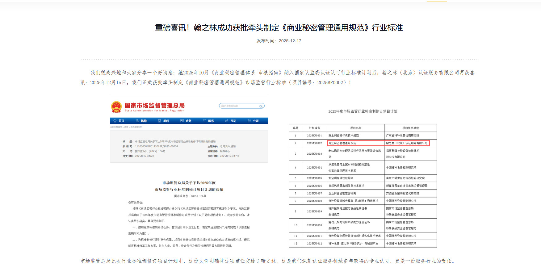 制定了商业秘密管理体系标准,颁发了全球首张商业秘密管理体系证书
